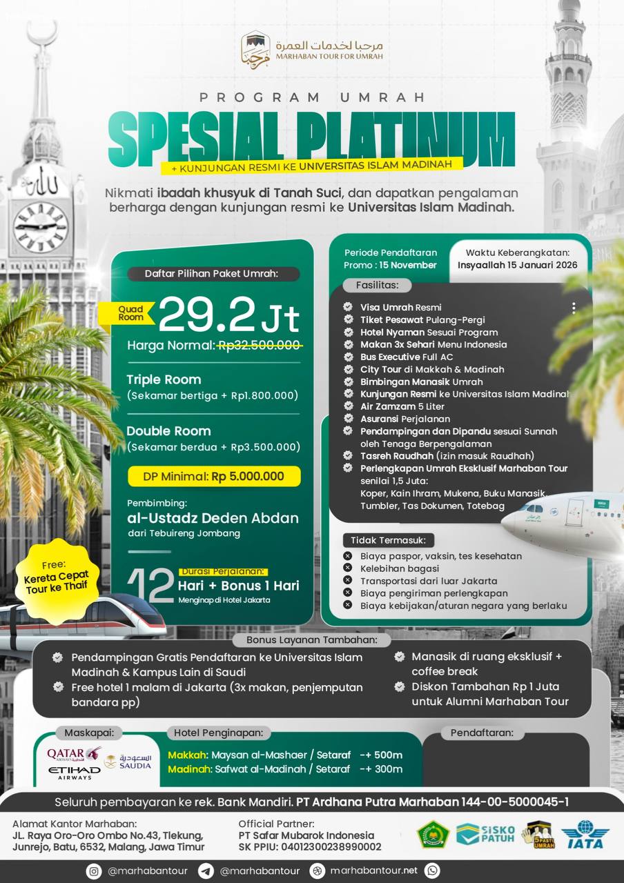 | 15 Jan 2026 | Spesial Platinum | 12 Hari | Tanya Admin | Tanya |